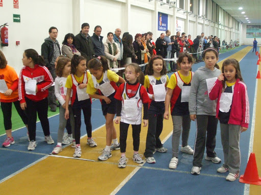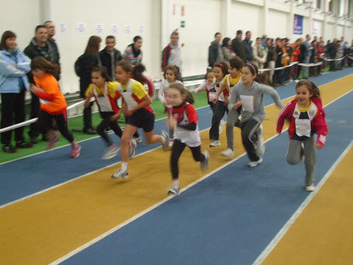 Otra jornada de promoción que ha organizado la Delegación de Atletismo de Valladolid, en el Módulo Cubierto de Río Esgueva, con gran cantidad de nuestros atletas, y también de los clubes de Tierra de Pinares- Íscar y Aldeamayor, en una divertida sucesión de competiciones-juego, haciendo, todos los atletas, velocidad, vallas, peso, jabalina y longitud, para acabar con una prueba de fondo (escaso…)