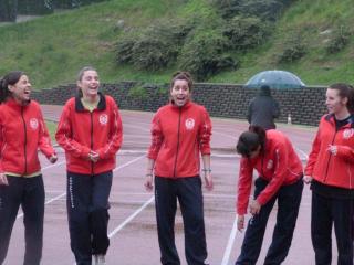 El mejor ejemplo, la última posta del 4×400 de Sonsoles Muñoz, recogió el testigo con casi 80 metros de desventaja (todo un mundo), y animada sin cesar por todas sus compañeras y por seguidores de nuestro club (por cierto, había más espectadores vallisoletanos que ovetenses), rebasó en la última recta a la atleta de la Universidad de Oviedo dio el triunfo a nuestro club