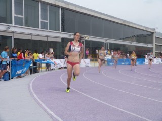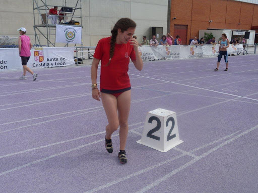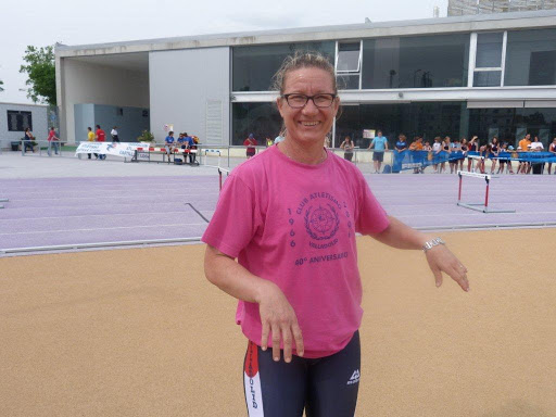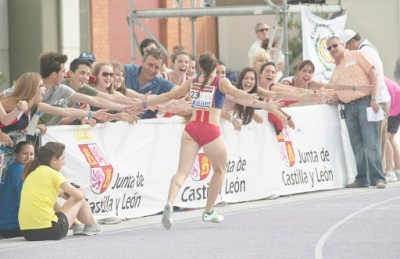 Pues eso, que gracias a todos, como hace la ejemplar María de Frutos en la foto gentileza de Miguel Ángel Santos, amigo y a la par sensacional fotógrafo. María ha cumplido en la pista y agradece a sus compañeras, compañeros y amigos (y amigas…) su apoyo.