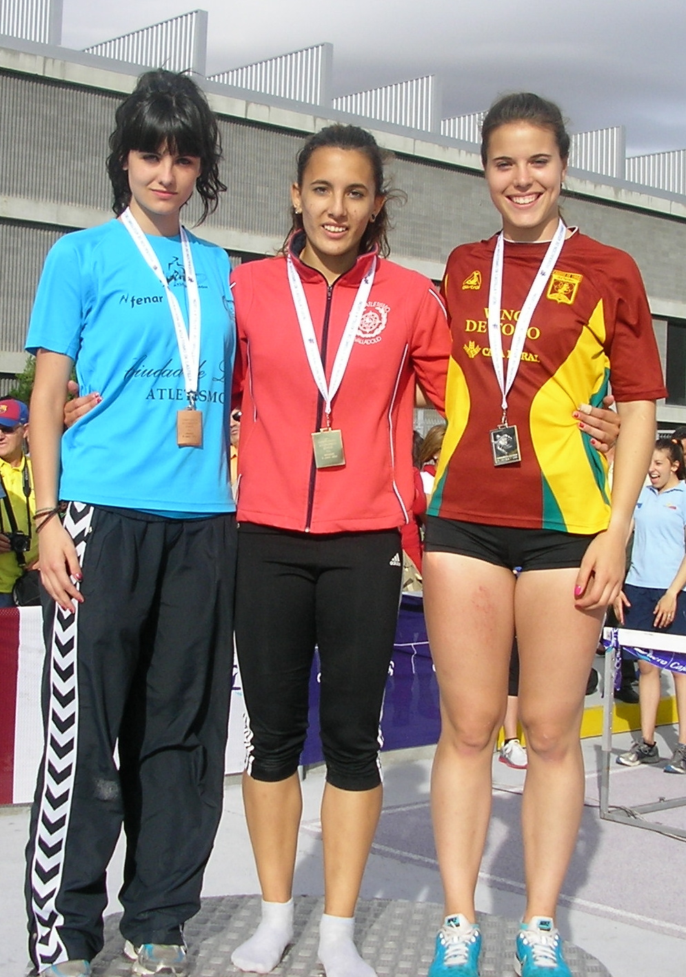 Otros oros llegaron con Sara Gómez y Sonsoles Muñoz en los 400 ( que no, que no entraron empatadas, es que una es juvenil y la otra , más mayorcita, júnior, Sonsoles se marcó unos sensacionales 57.50), Lorena Martín en los 1500, Diana del Ser en los 3000, Marta Fernández en los 400 metros vallas, Victoria Álvarez en disco, Pilar Otero en jabalina , Alexander Cuevas en los 100 y Alicia Cristóbal, en la marcha.