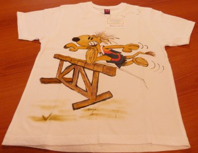 En la imagen, una de las cuatro camisetas que nos ha regalado la Secre del Club, Marga Muñoz, modelos únicos, que ella también puede confeccionar al gusto de cada persona…y seguro que será una camiseta totalmente única e irrepetida.