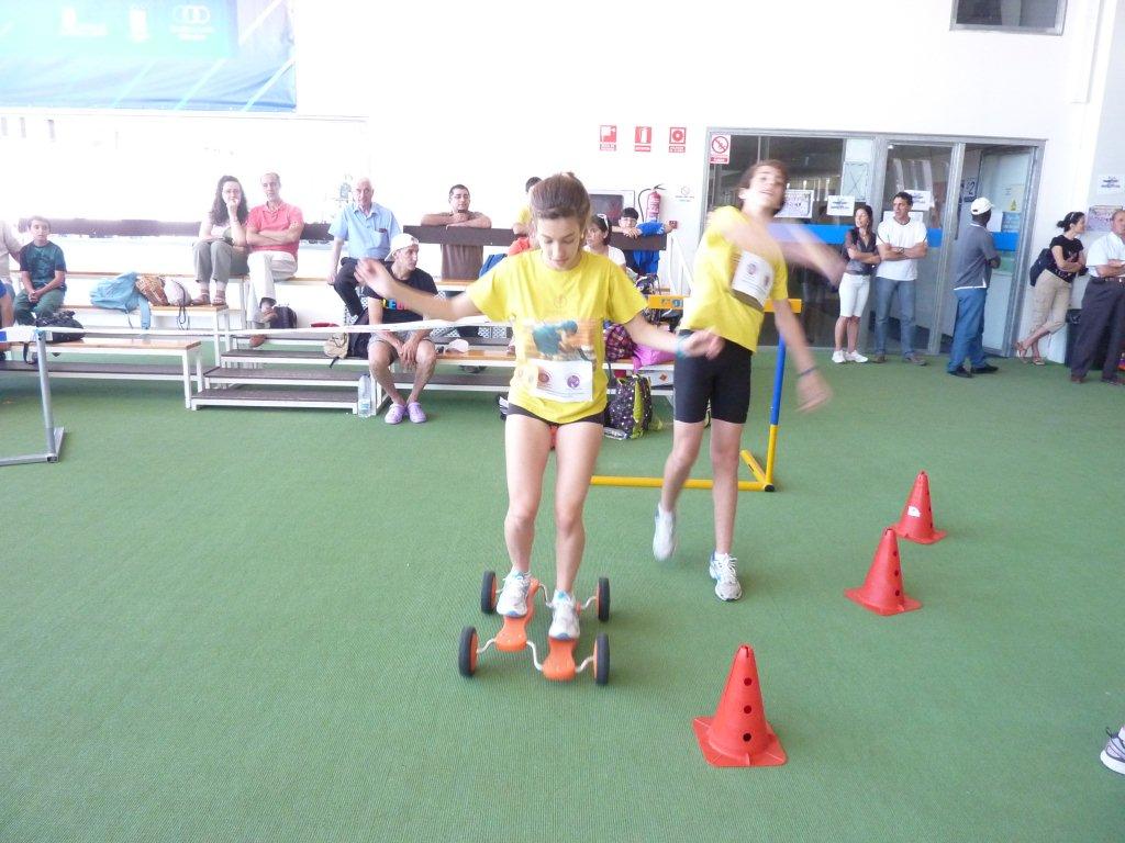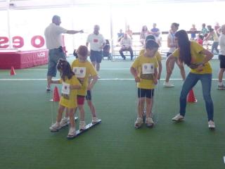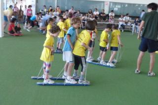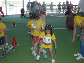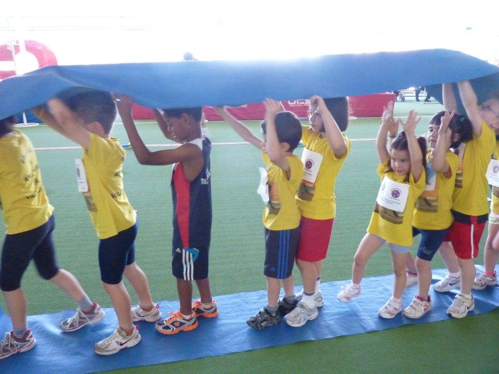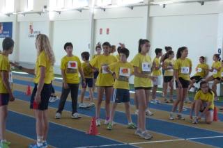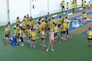 Pues eso, muchísima gente, primero un circuito de doce puestos de atletismo divertido, luego en la pista exterior pruebas “casi “reales…Por cierto, a ver si afina la puntería esa mamá que en el lanzamiento de martillo envió el artefacto justo en medio de la colchoneta de altura…menos mal que el martillo era de goma y no había ninguna cabeza cerca…( tiene mérito, consiguió elevar el martillo por encima de los diez metros que tiene la jaula de lanzamientos…)