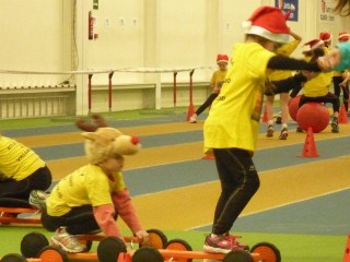 Mucha animación en la fiesta de navidad de la Escuela de Atletismo de Valladolid.