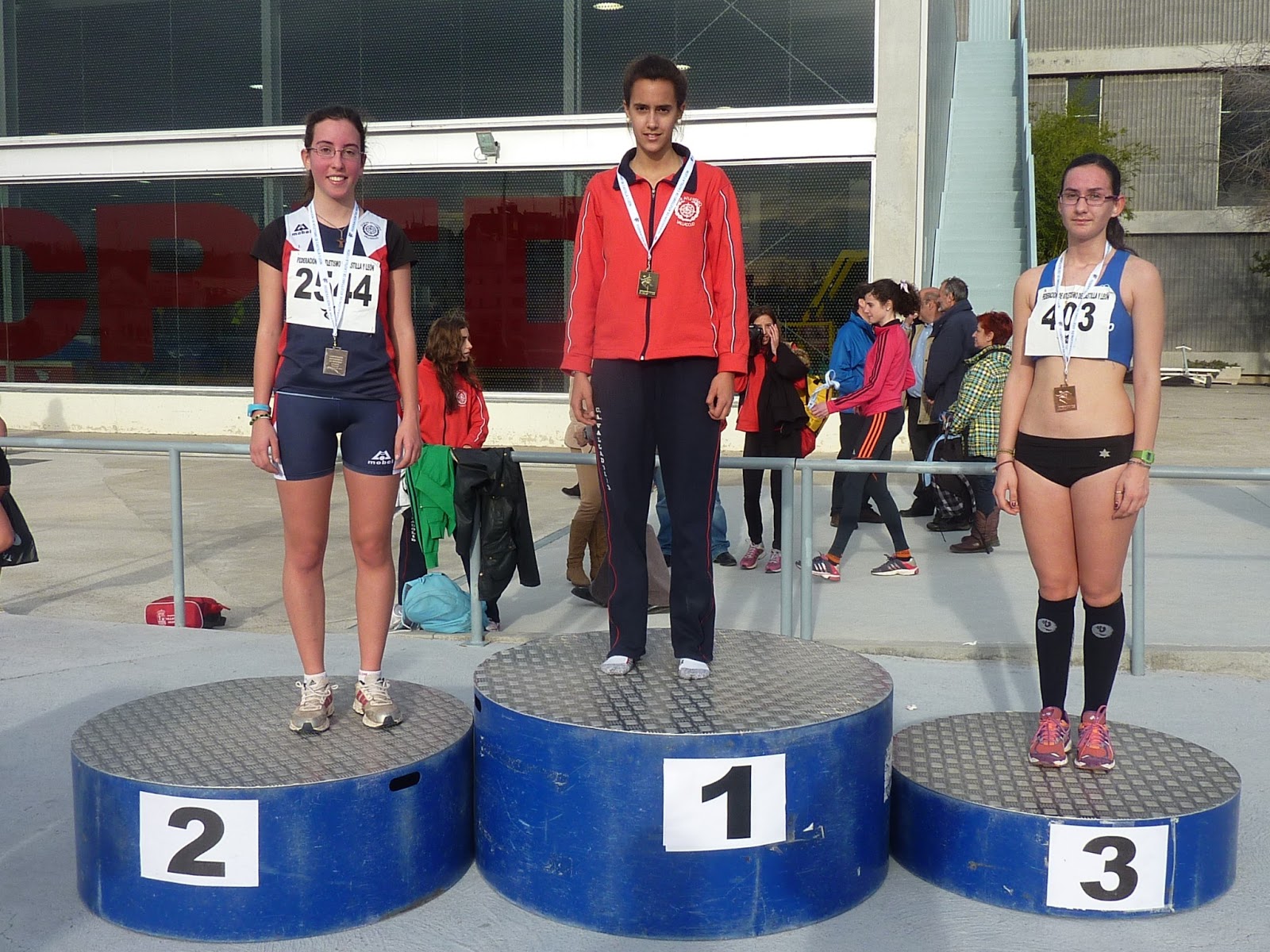 Un bronce especial se lleva la promesa Beatriz Guijarro, que debutaba con el Club Atletismo Valladolid, hizo unos valiosos 8.00 en los 60, en 800, Sonia Martínezhacía plata y 2.22.55 en los 800,Alejandra Sanz, además del oro cadete, era bronce absoluto en los 3000, con 10.41.67, Luz Prieto era bronce absoluto en triple, con una gran marca de 11.74, María Vega también era tercera en los 200 júnior, con 26.78, Isabel Arranz era bronce en los 800, con 2.29.19, más bronces lograban Eva Martínez, en los 300, con 44.28 y Carmen Martín-Luquero en los 600, con 1.43.60.