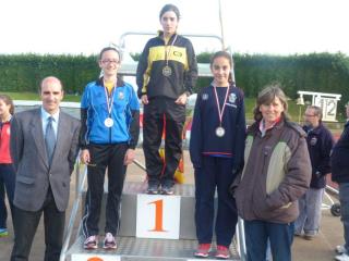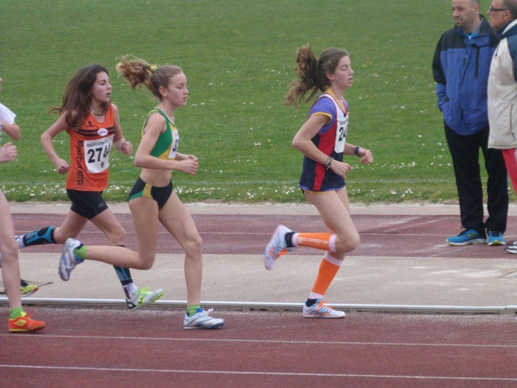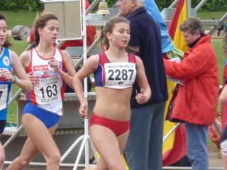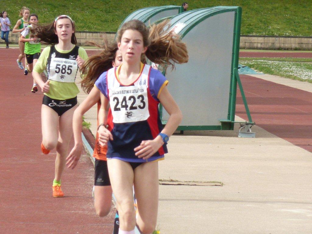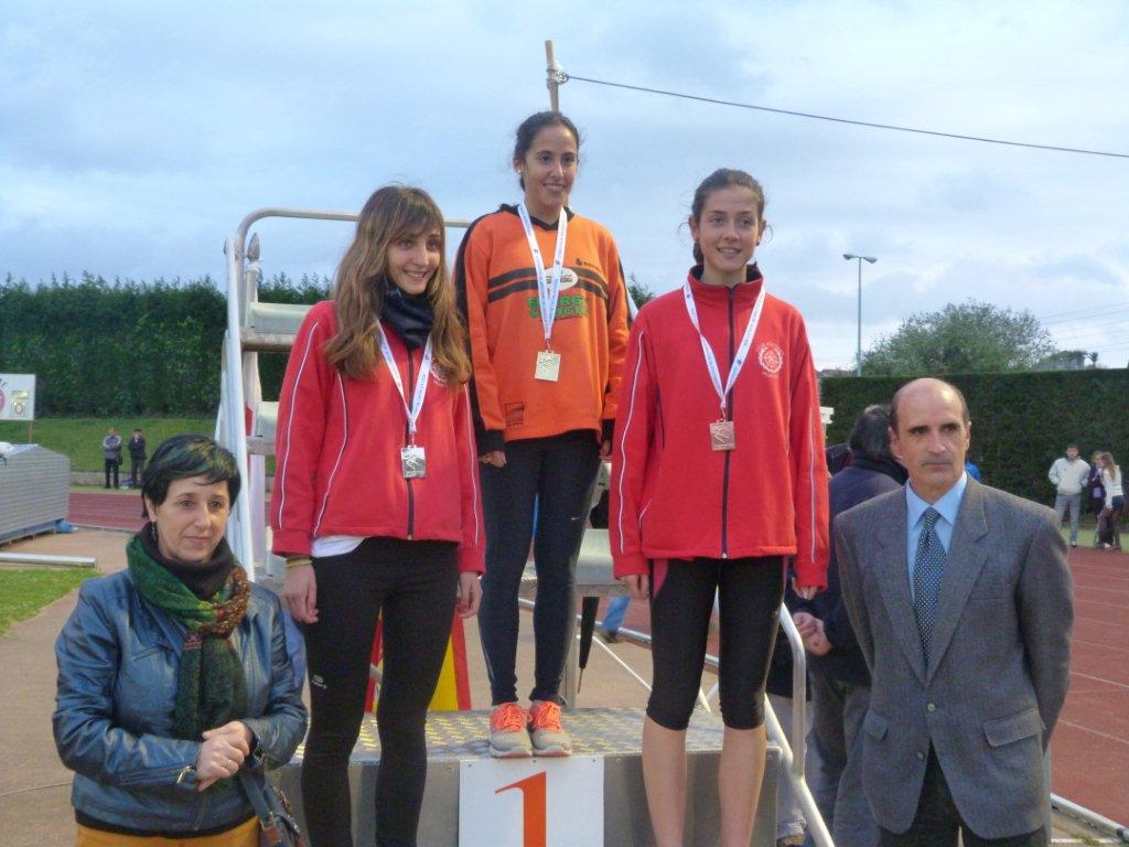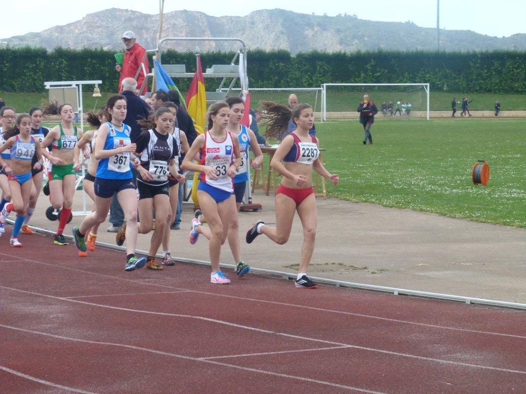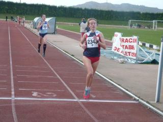 En cadetes, inteligente carrera de Ángela Alonso, que estuvo siempre en el grupo de cabeza, pero sin tirar, para en un espléndido Sprint final, llevarse la victoria, con 10,.43.3.