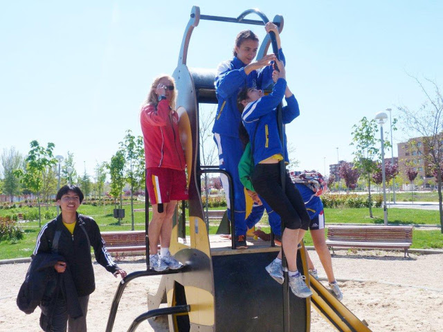 Después, en el paseo de regreso a Río Esgueva, juegos en el parque infantil (que no, que seguro que los entrenadores no se montaron en los columpios…)