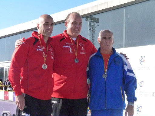 Y que decir de nuestros ejemplares veteranos y veteranas. Cesar Parra ganaba los 100, con 12.28, Julio Calvo, el peso, con 9,19