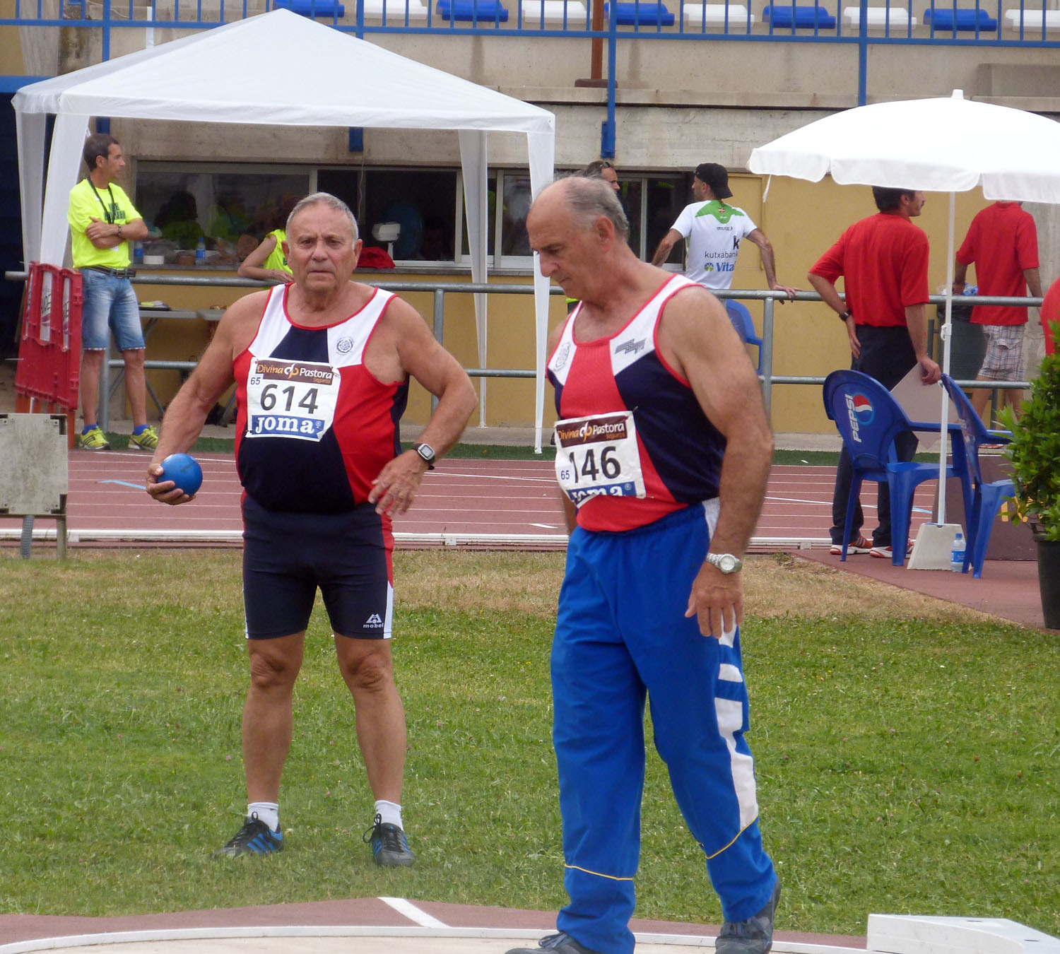 Julio Calvo, como decía que se aburría, a la espera de su prueba preferida, el disco, pues lanzaba también peso…y era medalla de plata, con 10,21.