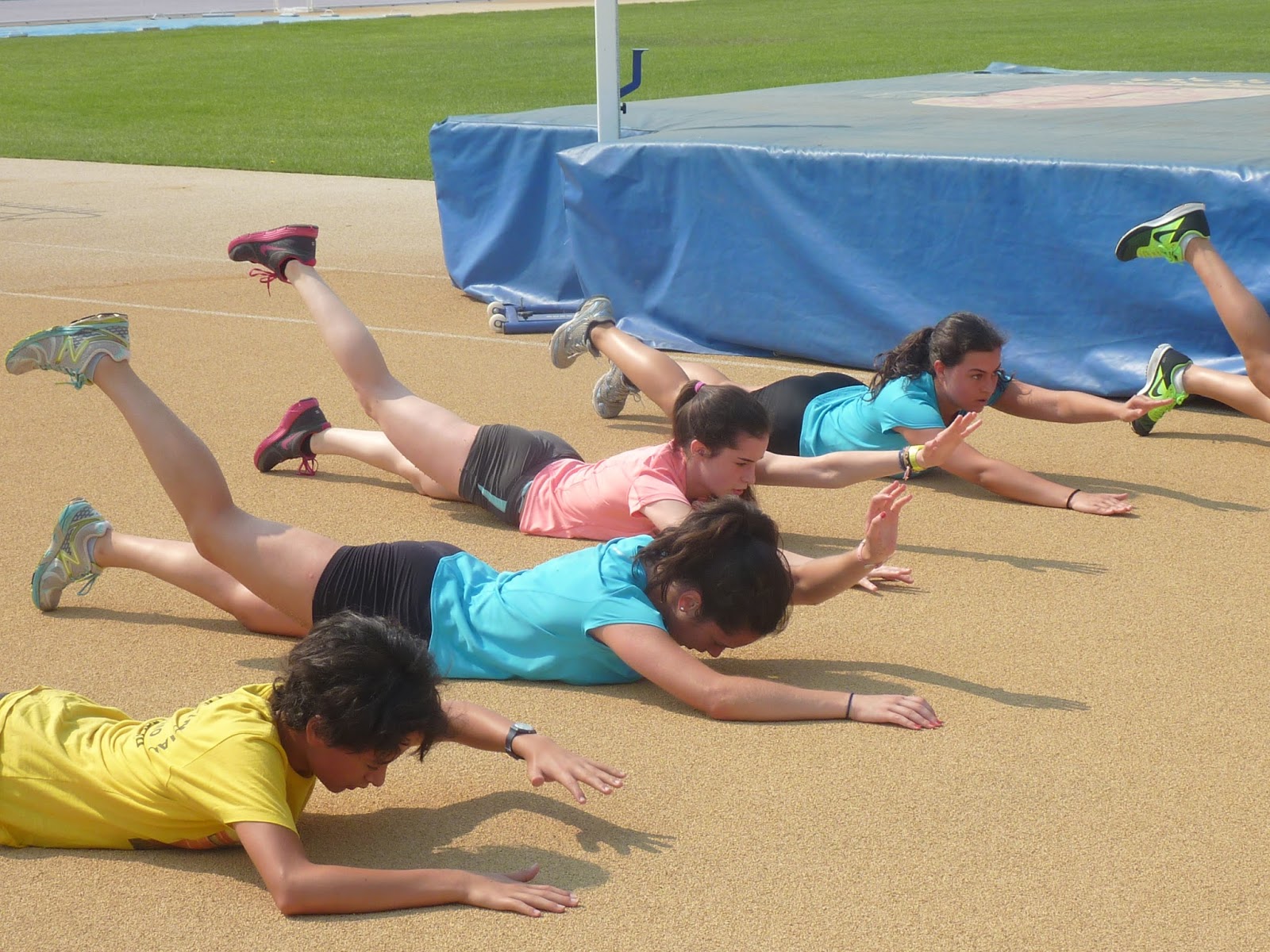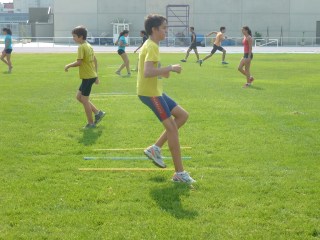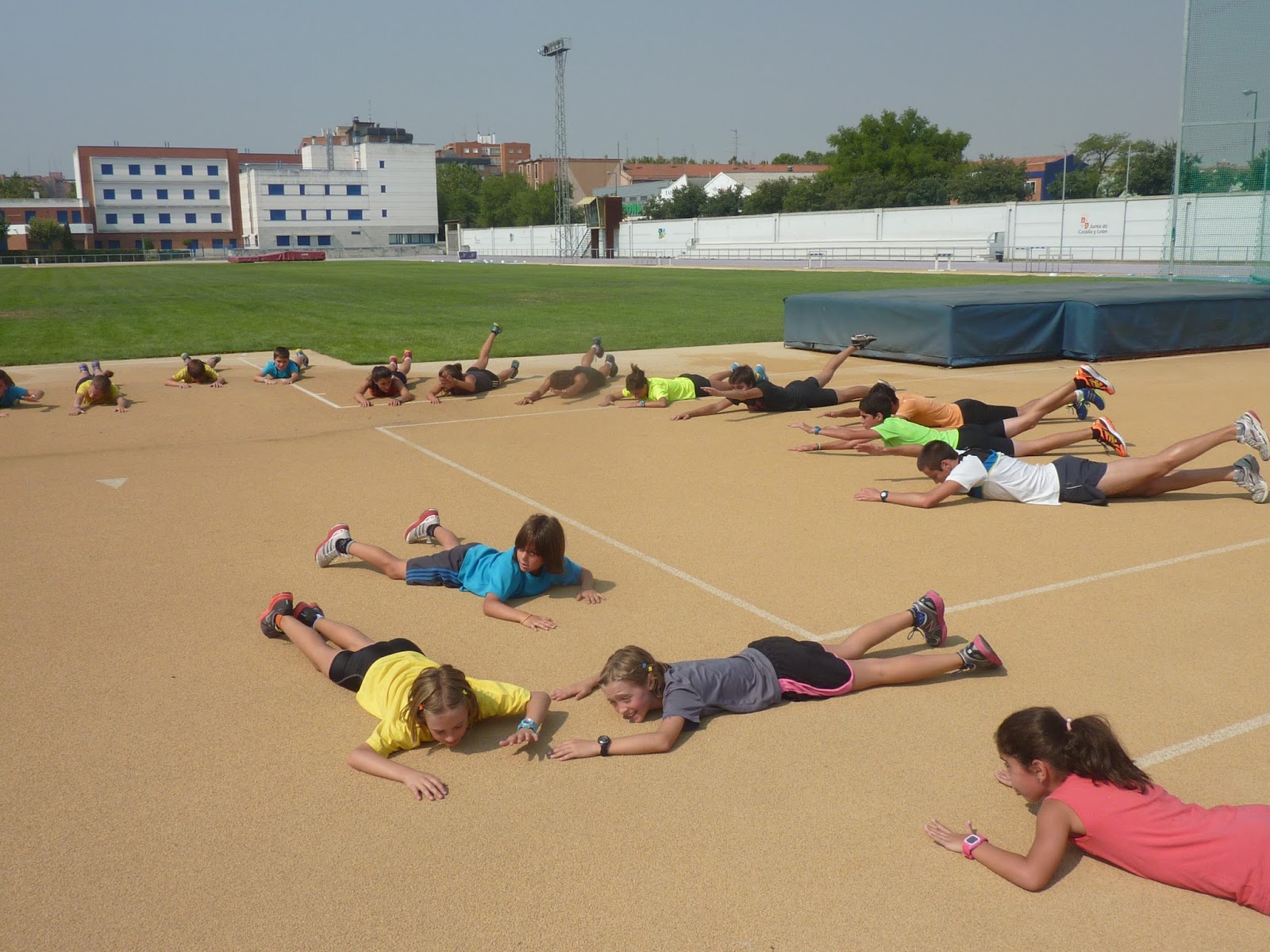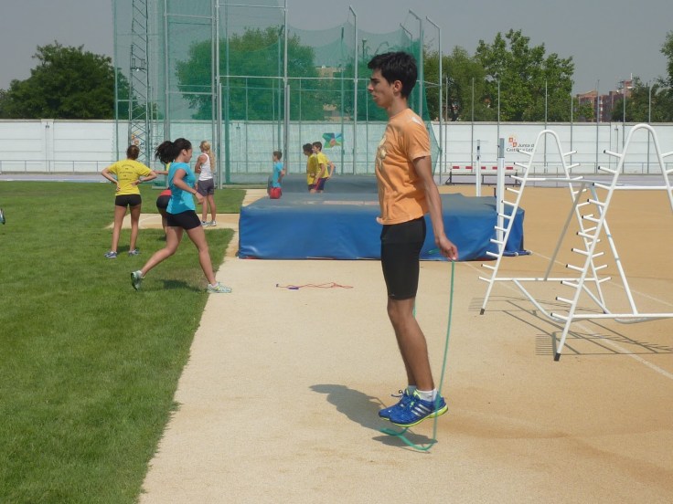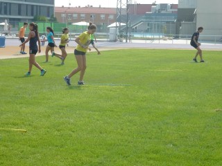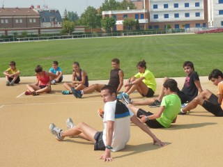 Vamos, que nuestros atletas están ya trabajando (bueno, más bien jugando para empezar…) en Río Esgueva y para no echar de menos la piscina y la playa, al sol de la pista de fuera, que el módulo estará cerrado por obras (están pintando las rayas…)