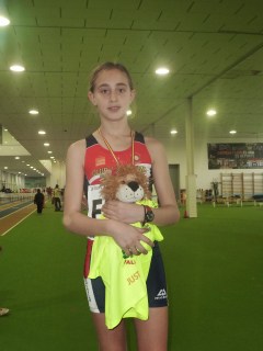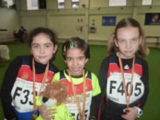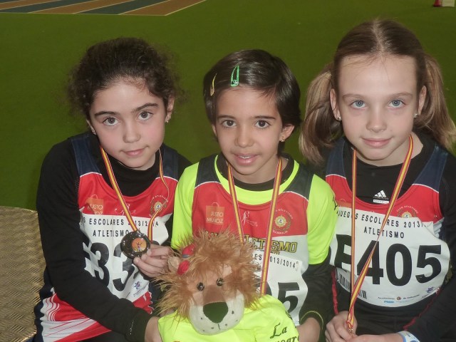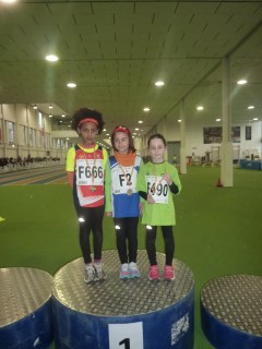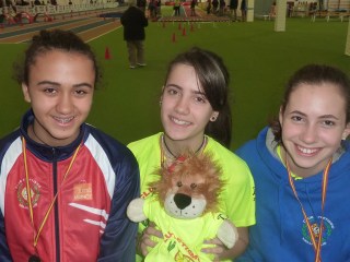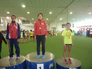 En alevines, en Fernando Vara, ganaba los 60, con 9.16 y la longitud, con 4,06, Ángela Ordóñez los 60, con 9.40 y el peso, Belén Mielgo, con 7,41.