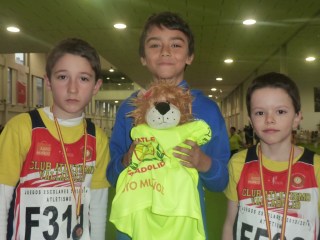 En infantiles, victorias en 60 de Alejandro Blanco, con 8.47 y de Bárbara Prieto, con 8.71, en 60 vallas ganaba Paula Díaz, con 14.01, en altura eran primeros Sergio Sanabria, con 1,33 y Lucia Martínez, con 1,23 y en peso, la que más lanzaba era Adriana Pérez, con 9,05.