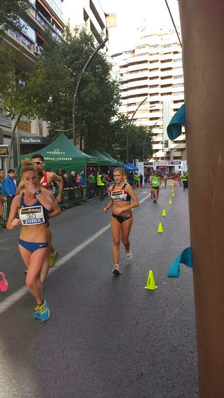 Vamos, en Murcia, de cine todo, un día espléndido, un circuito magnífico, y una gran actuación de las dos atletas del Club AtletismoValladolid, en el Campeonato de España Absoluto de marcha en ruta, ante lo mejor de lo mejor de las marchadoras nacionales.