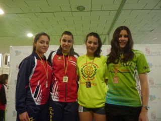 Plata obtenían Javier Pérez, en altura, con 1,82, Germán Navarro, en longitud, 6,31, María en triple, 10,19 y Alicia Insua en peso, 11,35, haciendo además mínima nacional en 60, con 8.12, y bronces, Daniel Alonso, en pértiga, con 3,05, Flor Diez en longitud, con 4,57 y Jorge Luis Blanco en peso, 12,56