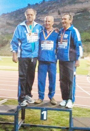 También estuvo allí otro de los nuestros, Saturio Olias, bien, bien, cuarto en M65 también del pentatlón de lanzamientos.