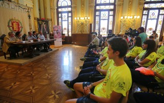 Y en el salón de plenos del Ayuntamiento de Valladolid (sitio chulo y elegante), un buen puñado de los nuestros y nuestras, en primera fila, todos amarillos (que no, que no de piel, morenos sí están, es que iban con la sudadera de Justo Muñoz, chula, chula, de verdad.), con Juan Antonio y Sergio San José, además de la Presi.