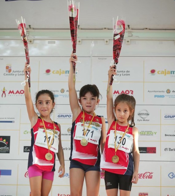 En los más pequeños, muchos, pero que muchos podios de los componentes de la Escuela de Atletismo de Valladolid.