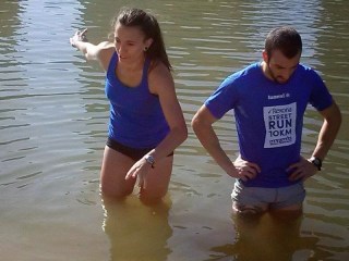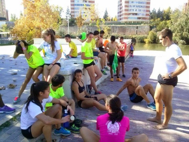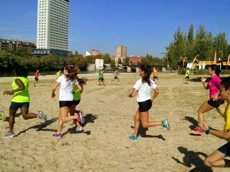 Y a falta de mar y de playa…pues playa de río…y en la arena estuvieron los atletas y atletas del grupo de Ana, que hasta se atrevieron a meterse (no del todo…), en el río Pisuerga, sin que, hasta el momento, tengan síntomas de ningún tipo.