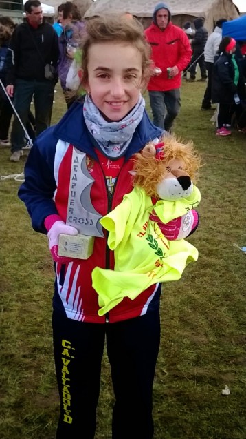 Tres estupendos podios, en alevines, brillante victoria de Lucía Blázquez (en la foto, con su trofeo y nuestra mascota), la juvenil Ángela Alonso era una gran segunda y la cadete Alejandra Redondo, que estrenaba categoría, era una notable tercera.