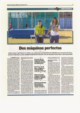 Y a la semana siguiente, bajo el título de «Dos máquinas perfectas», entrevista a dos miembros (miembras dijo un día una «modelna» descerebrada…) de la Factoría Pérez, que produce grandes atletas, y lo más importantes, forja buenas personas, que eso va a ser toda la vida.