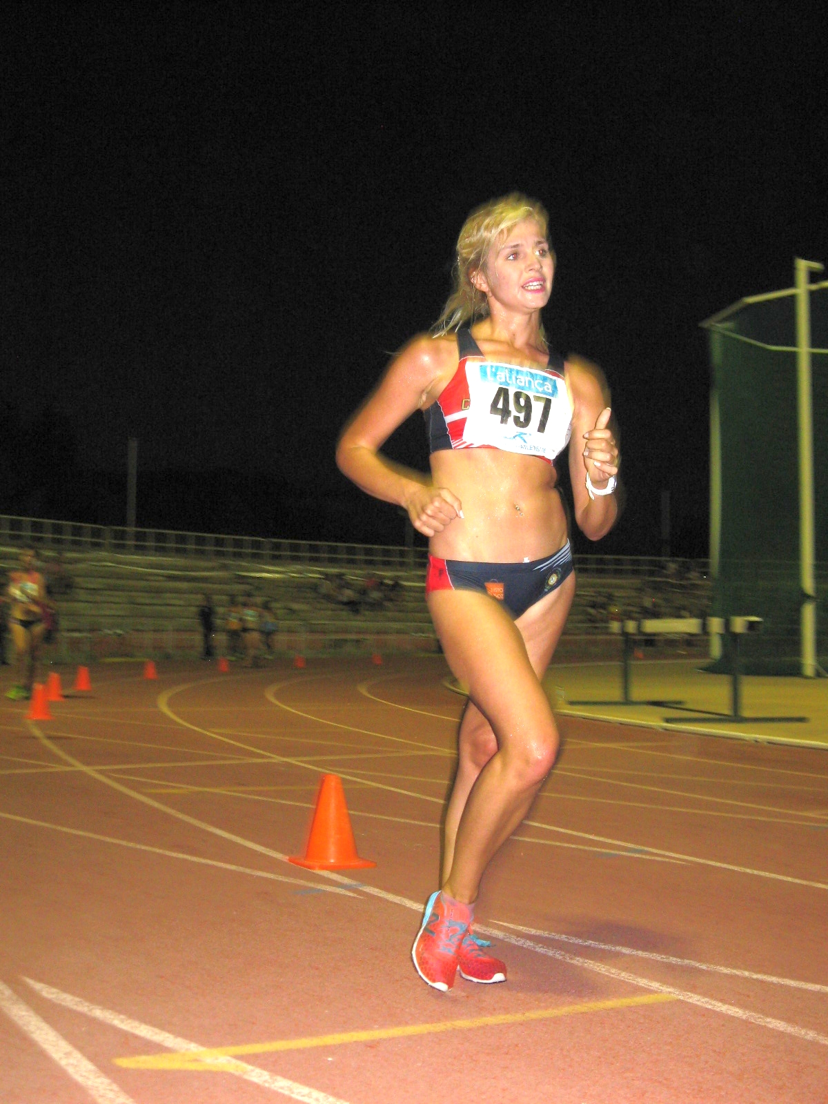 Pues en los 5000 marcha, con 25.18.90, gran segunda posición de Raquel León, esa chica que todo lo hace bien…y hasta diseña carteles de los Campeonatos de España y dirige videos sensacionales de las chicas del CAV.