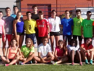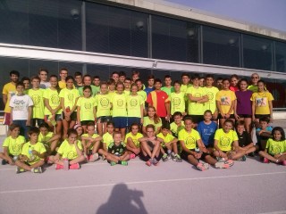 El otro día sacamos una foto con los peques de la Escuela, los que entrenan martes y jueves, pero hay más atletas en el club, pero que muchos massssss.