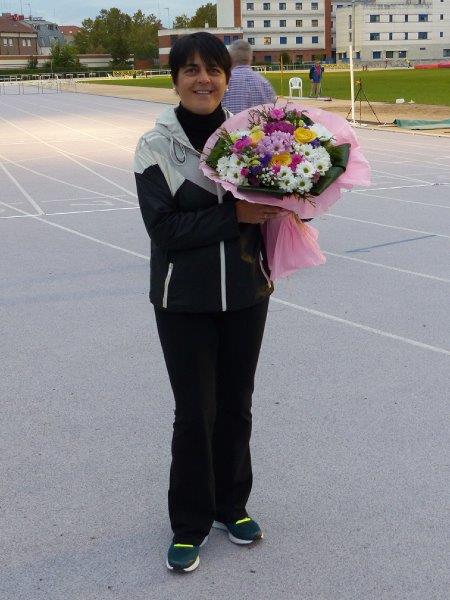 Estuvo presente el concejal de Deportes del Ayuntamiento de Valladolid, Alberto Bustos, que, junto a la Presidente del Club, Ana Perez, y el Presidente de la Federación, Gerardo García, entregaron un ramo de flores a la mirandesa Peggy Gallego, como ejemplo de una mujer entregada al atletismo, como atleta veterana y como técnico.