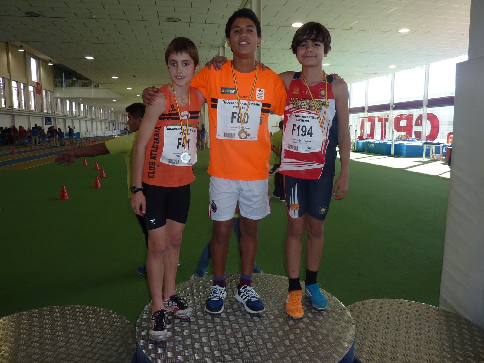 En alevines, Roberto Cabrera y Claudia Martín ganaban los 60, con 9.05 y 9.42, respectivamente, Alex Delgado, el fondo, y la longitud, con 3, 90, Marta Briz, y el fondo Elisa Peón.