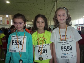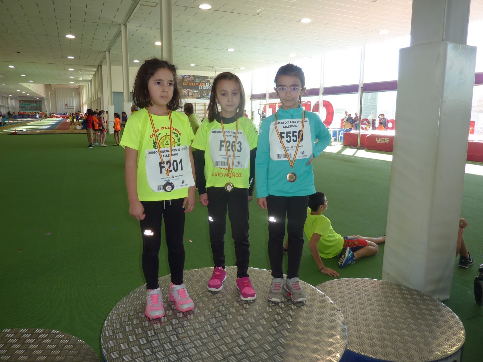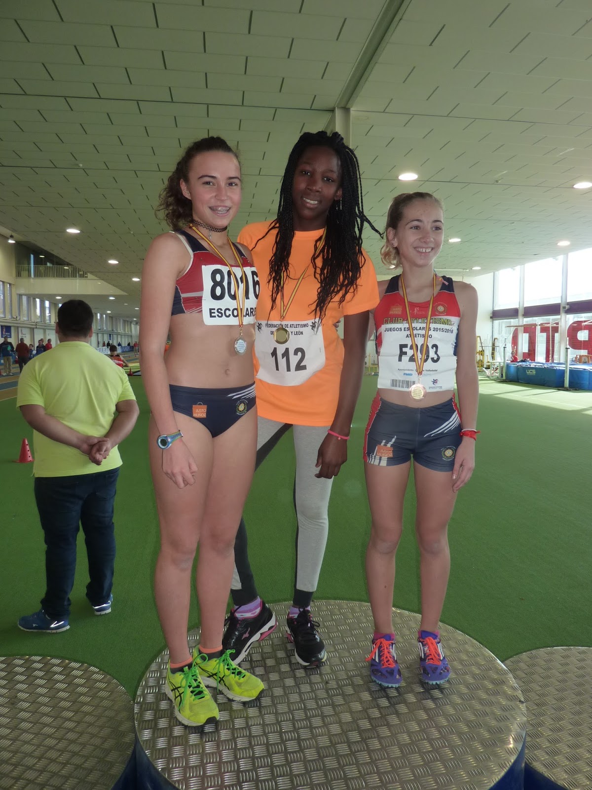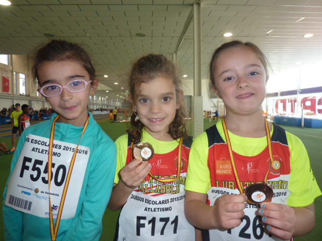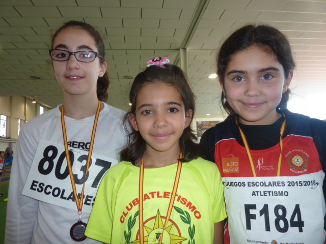 En prebenjamines, ganaba los 50 Patricia González, con 10.08 y la longitud con 2,09, Sara Robledo era la mejor en fondo, y en jabalina, llegaba más lejos Ainhoa Casado, con 6,00.