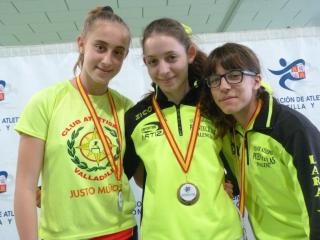 Plata logró María de Frutos, en los 60, on 7.67, quinta era la mundialista juvenil Mónica Mendoza, recién regresada de Chile, sexta Flor Diez, con 7.94, y con la nota esperanzadora de que tres cadetes del CAV, Wilvely Santana (8.08), Olga Macías ( 8.11) y Bárbara Prieto ( 8.11), lograban mínima para el Campeonato de España que se disputará en Oviedo.