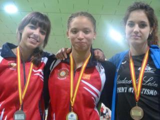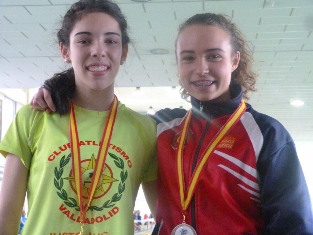 Más medallas cadetes para el CAV, Olga Macias era bronce en 60, con 8.08, igual metal que Claudia Velasco, en pértiga, con 2,40, y una gran medalla (veintiuna, en total) para Alba Fernandez, de nuestro club filial, el Castillo de la Mota. con 1,54 en altura, con otro bronce para Victor Peláez, peso, 11.41