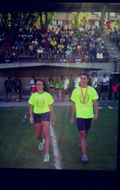 Y es que en el preámbulo del fútbol, Bárbara Prieto y Sergio Sanabria salieron al centro del campo con sus medallas de subcampeones de España en relevos 44×100…
