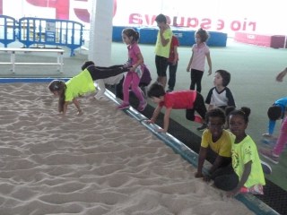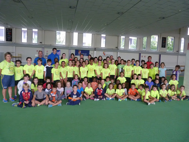 Alrededor de cien niños, entre los dos grupos, se dieron cita en el entreno del jueves de la Escuela de Atletismo de Valladolid.