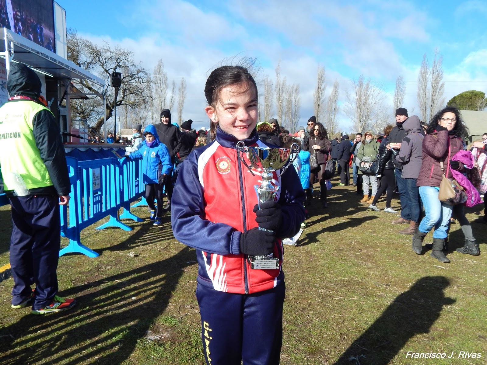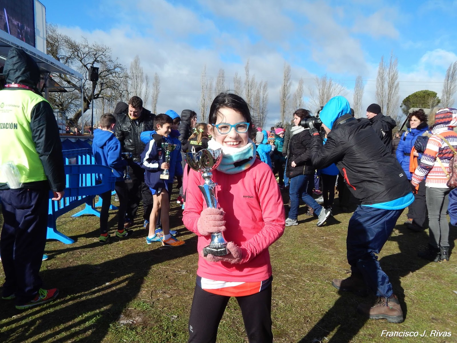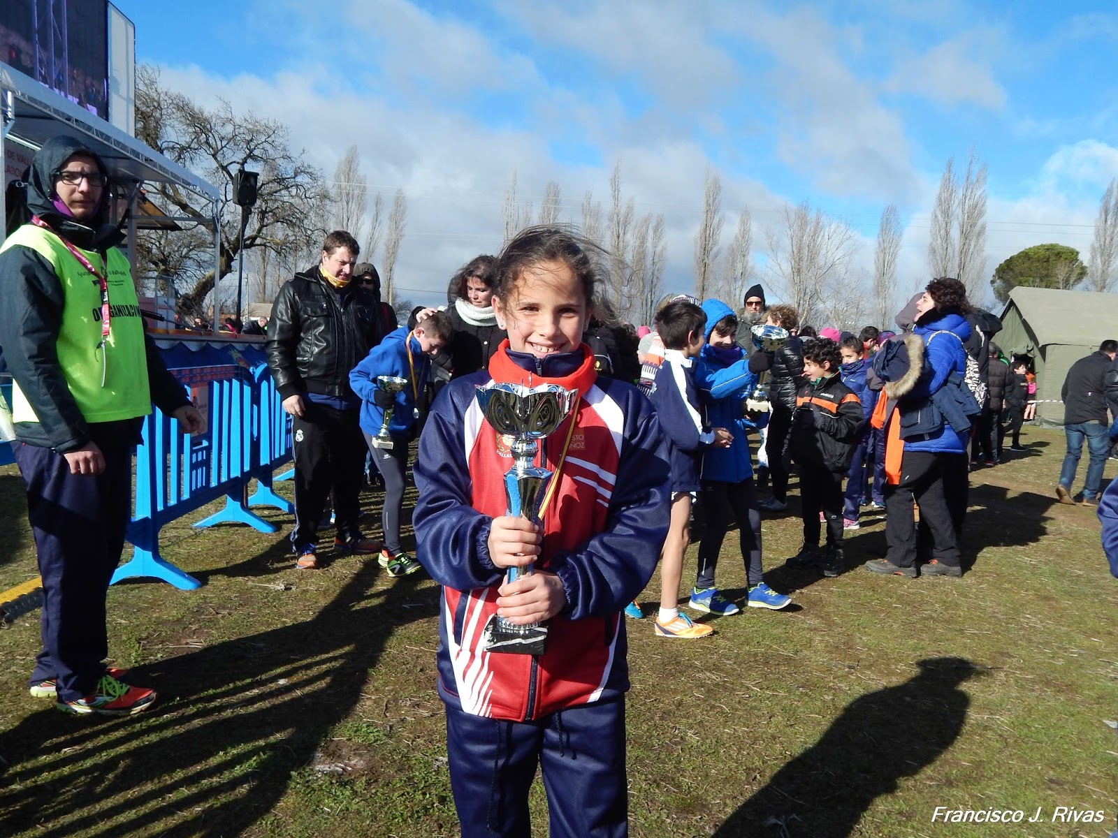 En benjamines, una gran victoria por equipos, con Sandra Fernández, segunda, Carla Hernandez, quinta, Alba Rivas, octava y Adriana Hernando, novena, y los chicos eran quintos, siendo el mejor Javier Delgado, sexto. Y en lo más pequeños, los prebenjamines, terceros era Fernando Blázquez y Sofía Rivas.