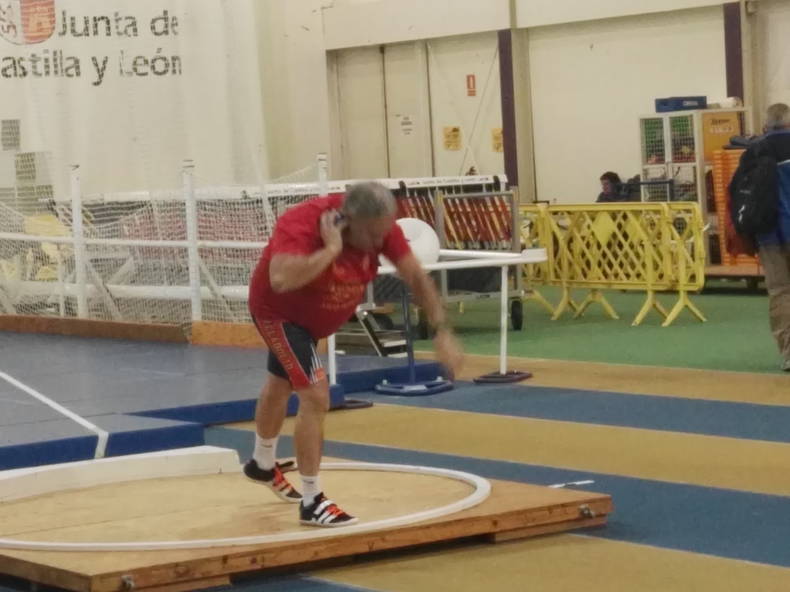 María Victoria Álvarez ( Mariví para los amigos), ganaba el martillo, con una estupenda marca personal, 43,63, mínima para el Campeonato de España…al aire libre, claro, que en pista cubierta sería «algo» peligroso, mientras que la juvenil Adriana Pérez lanzaba 36,53, y luego hacía 30,34 en disco….