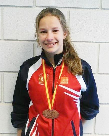 Lucía Sanz, nuestra gran marchadora, hizo esta vez los 3000 lisos, y no lo hizo nada mal, con 11.12.91…y en peso Belén Mielgo llegaba hasta los 10,12