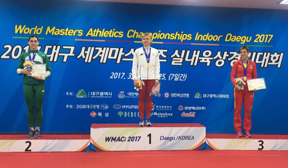 Excelente balance de Carolina García Garzón, la ejemplar veterana del Club Atletismo Valladolid, en su actuación en el Campeonato del Mundo para veteranos en pista cubierta, celebrado en Daegu, en Corea del Sur