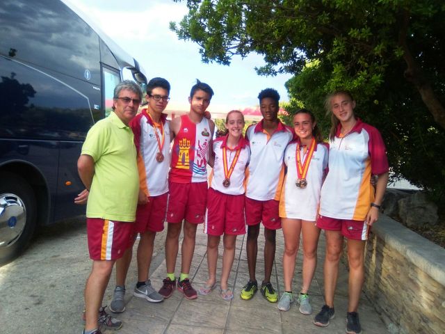 En la foto, con Juan Antonio González, que viajó a Lorca como entrenador, de izquierda a derecha, Victor, Alejandro, Laura, Jean Ives, Bárbara y Belén.