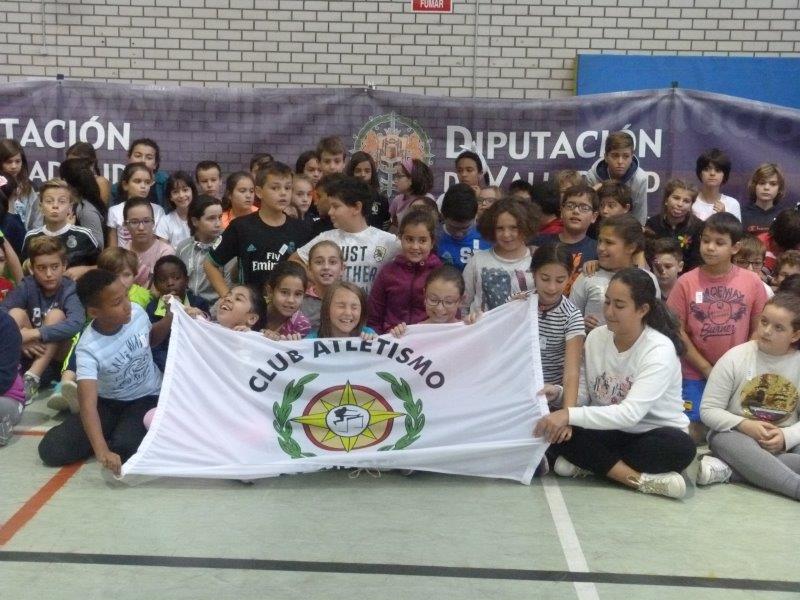 Más de 300 niños están disfrutando en la mañana de hoy de una jornada de «Jugando al Atletismo», en el Polideportivo Municipal de Aldeamayor de San Martin, y organizada por nuestro club dentro del Convenio que el Club Atletismo Valladolid tiene con la Diputación de Valladolid, dentro del Programa de Actividades Deportivas 2017.