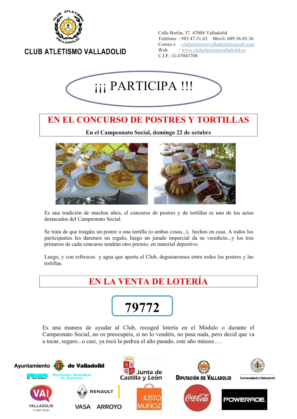 Las tortillas y los postres los tenéis que entregar a nuestros colaboradores a primeras horas de la mañana, luego, un jurado imparcial dará su veredicto…y luego, entre todos los atletas del CAV y de sus familiares, pues nos comemos todo, más lo que vamos a poner nosotros, además habrá refrescos para los atletas y agua (embotellada) para todos…