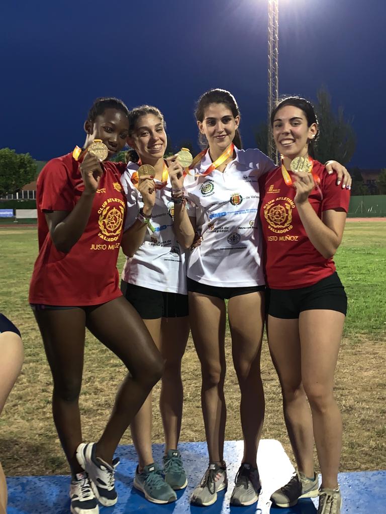 Como remate, y con emoción a raudales, el 4×100 se proclamaba campeón de España, con entregas al límite, y marca más que discreta…pero lo que valía era el oro, otro campeonato de España para nuestra Escuela de Velocidad, ahí estaban Wilvely Santana, lanzando el relevo, lo recogía Alba Lázaro, fenomenal, luego Laura Martín, saltadora que no le hace ascos al relevo, y un último cambio para provocar infartos, pero todo se arregló y Lucia Herrero llevaba al CAV al oro español.