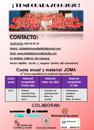 Aquí os dejamos el díptico del Club Atletismo Valladolid de la temporada 2019/2020