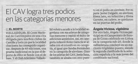 Varios atletas del Club Atletismo Valladolid han salido en periódicos esta semana, tanto en formato digital como en papel, tras sus buenos resultados en el Cross de Cantimpalos.