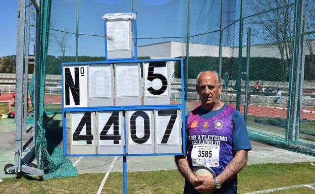 En disco estuvo nuestro veterano entrenador Julio Calvo y tres de sus atletas. Julio lanzaba 40.31 metros con el disco de 1 kg, y Mateo de Castro, también con el mismo artefacto, mejoraba hasta los 40.11.