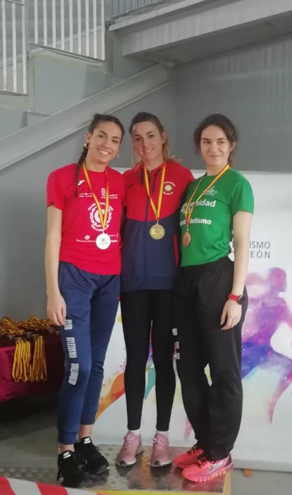 Ainara también se subía al podio de lanzamiento de peso junto a Mariví Álvarez, siendo segunda y tercera absoluta de Castilla y León con 10.84 y 10.15 respectivamente.