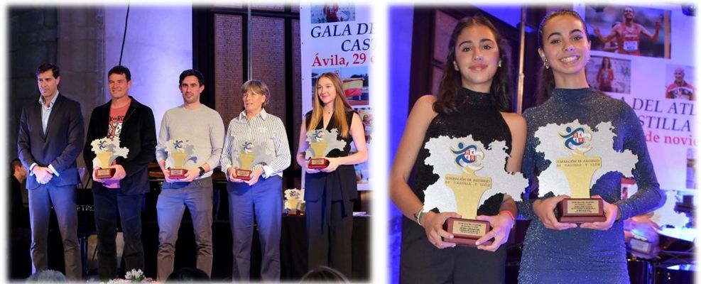 Entre la larga lista de premiados, recogimos tres premios, la sub 16 Diana López, como integrante de la selección de Castilla y León campeona de España de marcha, Andrea Jaén, como campeona de España por equipos sub 18 de campo a través, y el CAV, como equipo destacado, en este caso recogió el premio la Presi, Ana Pérez Carnicero, de manos del Presidente de la RFEA, que nació y crio a escasos metros del escenario de la Gala.