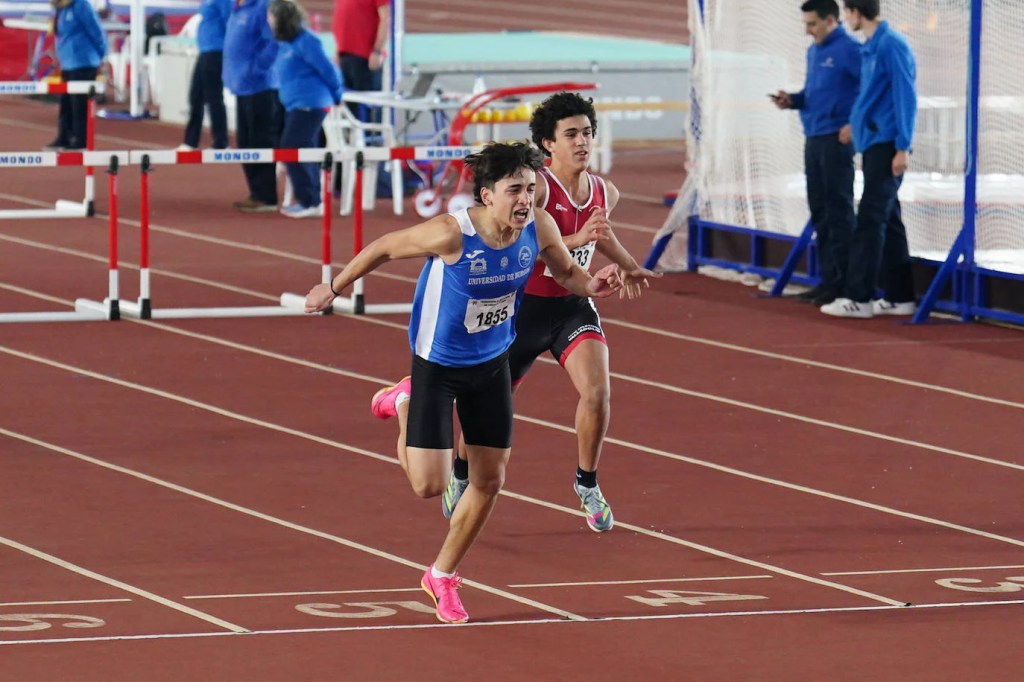 Entre los chicos destacó Denis Matsimouna, con 7.09 en 60 y Javier Pérez, con dos marcas personales ya en sub 18, peso, con 12.29 y 60 metros vallas, con 8.97.