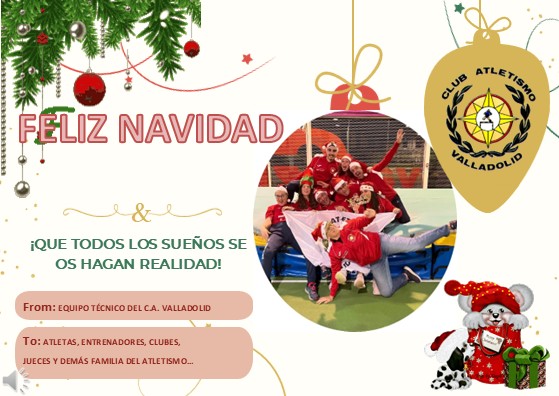 EL CLUB ATLETISMO VALLADOLID OS DESEA UNA ¡FELIZ NAVIDAD! ¡¡FELIZ NAVIDAD!! Compártelo: Haz clic para compartir en X (Se abre en una ventana nueva) X Haz clic para compartir en Facebook (Se abre en una ventana nueva) Facebook Me gusta Cargando... Relacionado Los comentarios están cerrados.