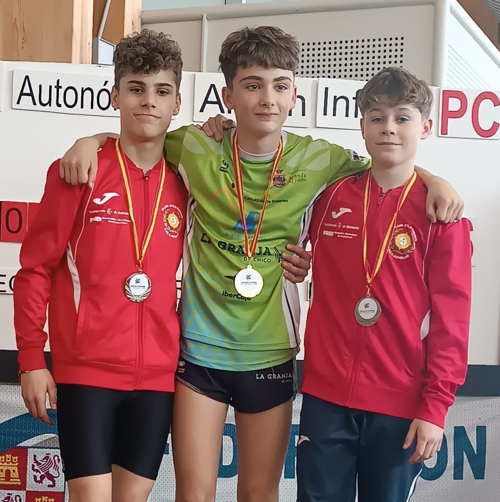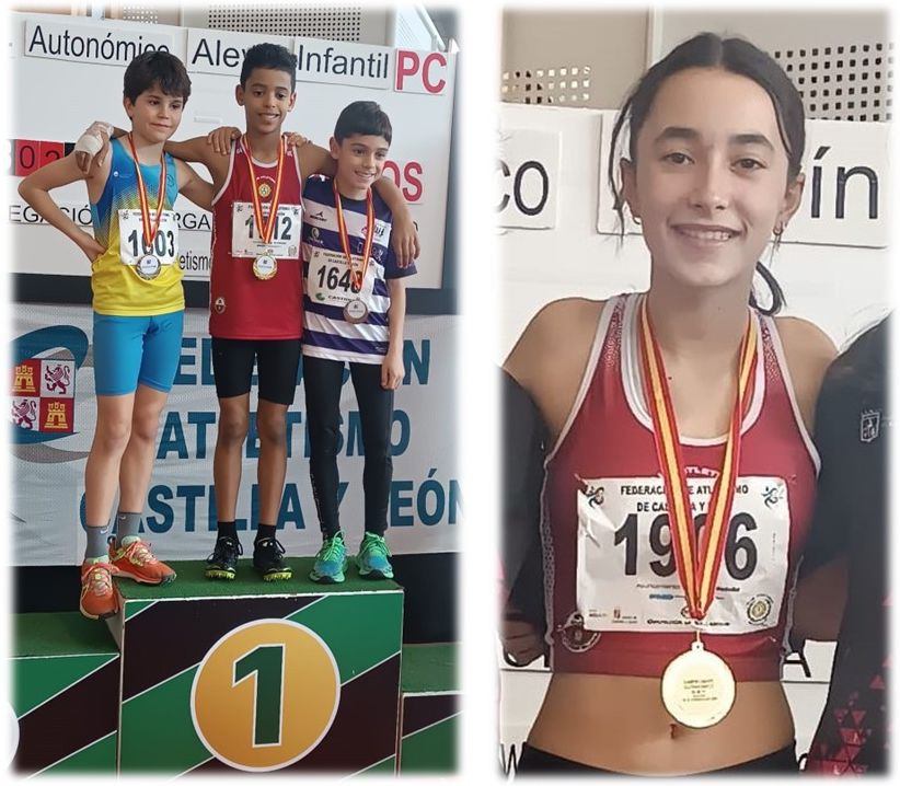 Dos de los nuestros destacaron del total de nueve siete medallas que se lograron en San Amaro., En sub 12, Alain Yonier Pérez, doble campeón de Castilla y León, en 60, con 8.54 que logró en las semis, y en longitud, con un mejor salto de 4,38, y en sub 14, la pertiguista Lucía Martín, con marca personal de 1,90, cumpliendo también en las vallas, donde hizo 10.87.