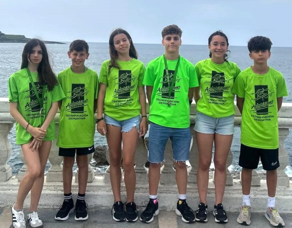 Pues este año han estado seis atletas, en la foto de izquierda a derecha, la mediofondista Andrés Diego, el vallista Pablo Barriuso, la saltadora Lucía del Río, el polivalente Lucas Borrallo, la lazadora Kira Lamas y otro mediofondista, Alain Martín.