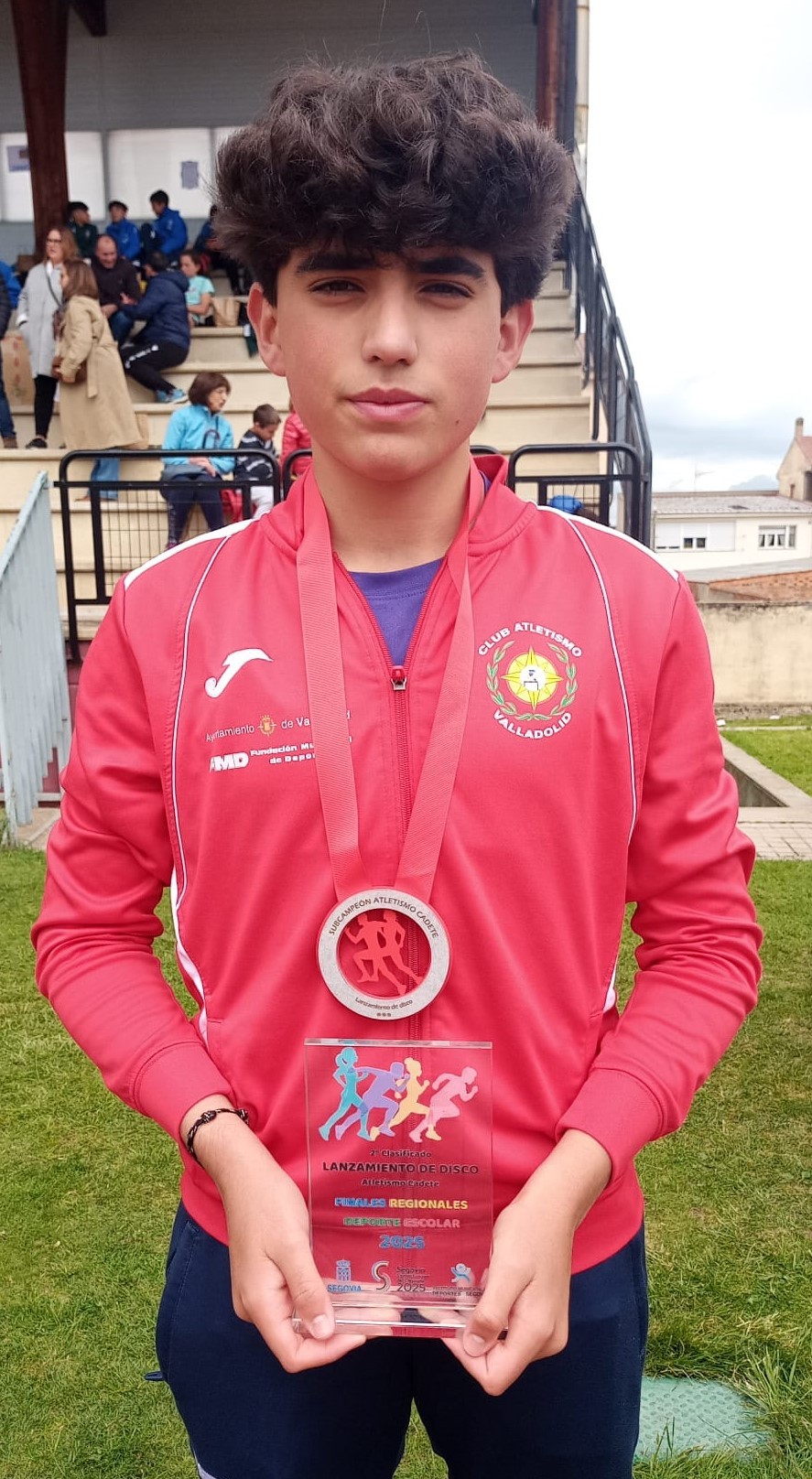 En disco sub 18 eran bronce Lucas Martínez (en la foto), con 31,45 y Marta Val, con 32,99, especialidad donde volvía a brillar el master Emilio Méndez, con 36,81. La misma Marta Val repetía bronce en martillo, con 32,89. En jabalina sub 20 era plata Violeta García, con 30,87.